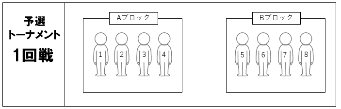 一回戦プレイ順:[1位&2位] [3位&4位] [5位&6位] [7位&8位]